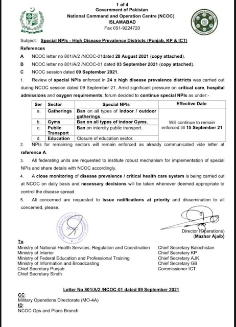 9 Sept NCOC Meeting Update About School closure Reviewed by Soch Badlo By MAK on September 09, 2021 Rating: 5